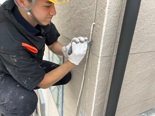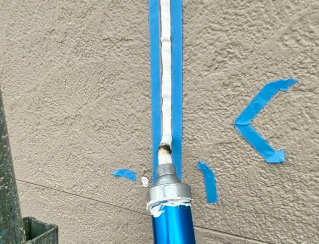 本日は東大阪市豊浦町にて塗装工事に入っていますお家のシーリングの補修工事をしました。