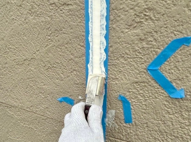 撤去をすると、中のジョイナー(バックアップ材)が見えます。