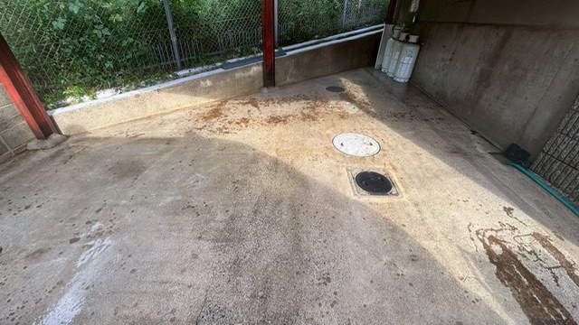 土間まで洗浄が終わると高圧洗浄の工程は終了です。