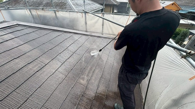 今回は屋根の塗装もしますので、先に屋根を洗浄しています。