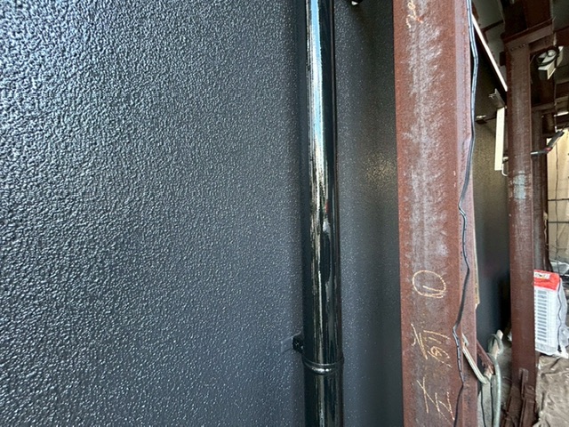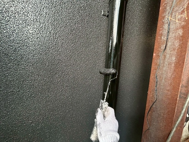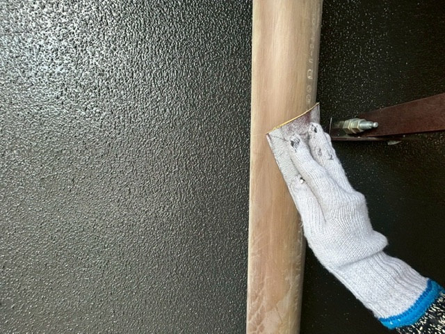 下地状態の悪かった太い配管はケレンをしてから塗装します