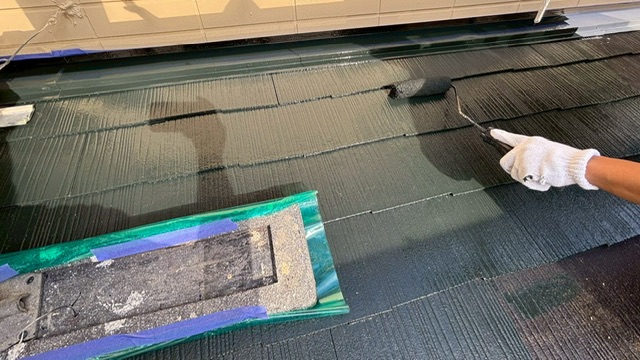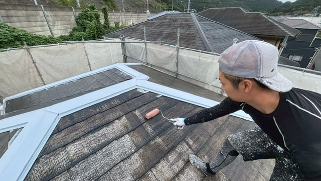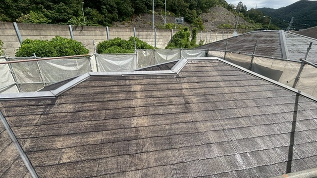 本日は阪南市山中渓にて塗装工事に入っていますお家の、屋根の塗装をしました