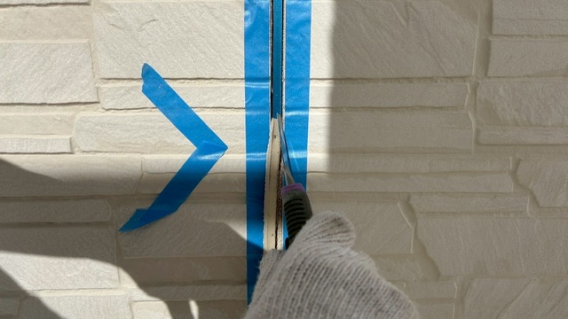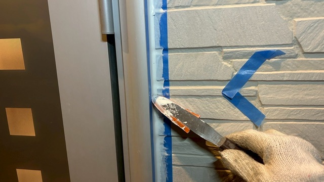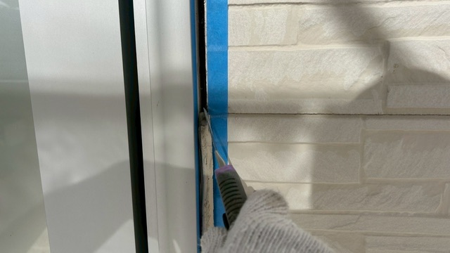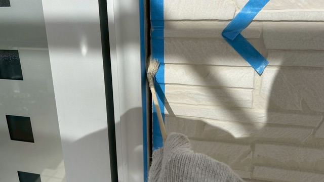 既存下地とコーキングの密着をよくするためにプライマーを塗布します。