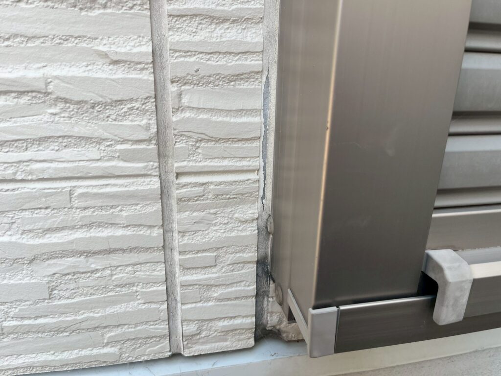 外壁同士の継ぎ目にゴムのような素材のシーリングがあります。