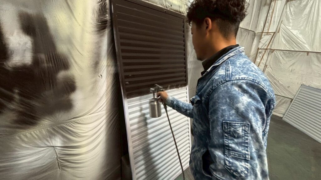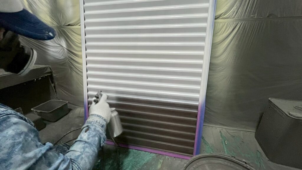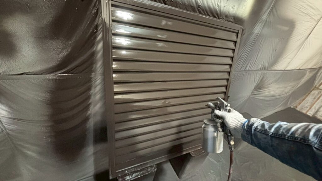 塗装はローラーではなく、エアレスを使用して吹付で行います。