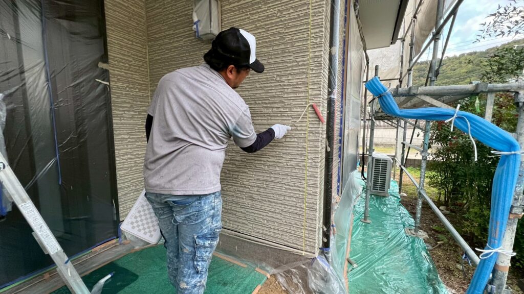 今回の施主様は1色仕上がりを望まれていなかったので通常塗装の3回塗りをしてからさらに2回塗装をかけてより立体的に仕上がる塗装をします。