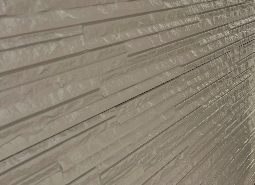 色つきの塗料で塗装工事をすると写真のように、模様はそのまま残りますが色が1色になりぺたっとした印象の仕上がりになります。