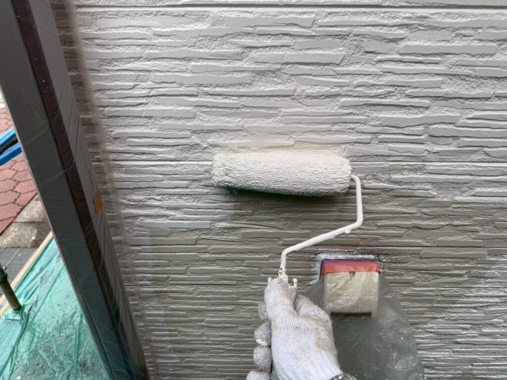 シーラーは無色のため、色は付きませんので元の外壁色にそれぞれ色が中塗りから付いていきます。