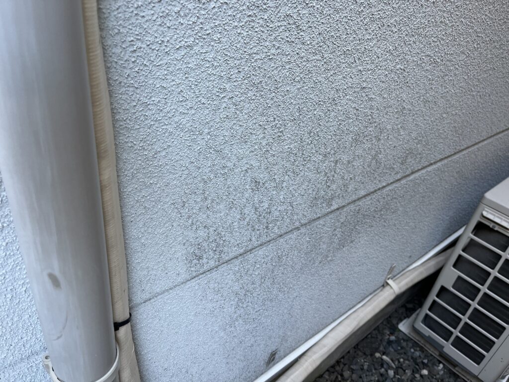 こちらのお家は窯業系サイディングのお家で、新築時にその上からリシンと言います砂の塗料を吹き付け施工がされていました。
