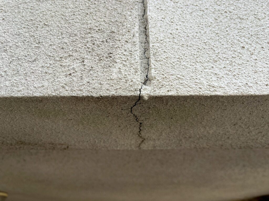 外壁の所々に縦の目地があり、ひび割れを目地部分に集まるようにして躯体を守っています。