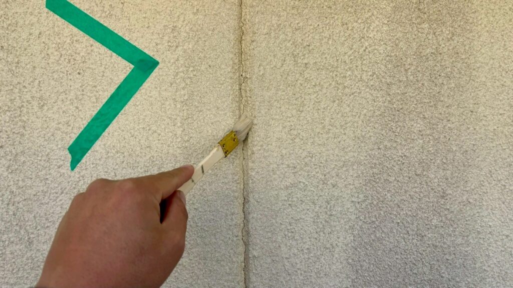 下地と補修するシーリングの密着を良くするために接着剤の役割を果たすプライマーを塗布します。