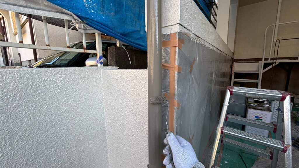 外壁塗装前に1回目の塗装済なので、付帯部は基本的に2回塗料を塗り重ねて仕上げます。