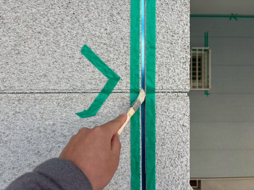 既存下地と補修するコーキングの密着をよくする為にプライマーを塗布します。