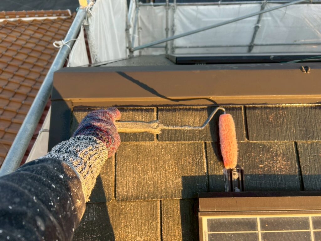 屋根はシーラー2回、主材2回の合計4回塗りで仕上げていきます。