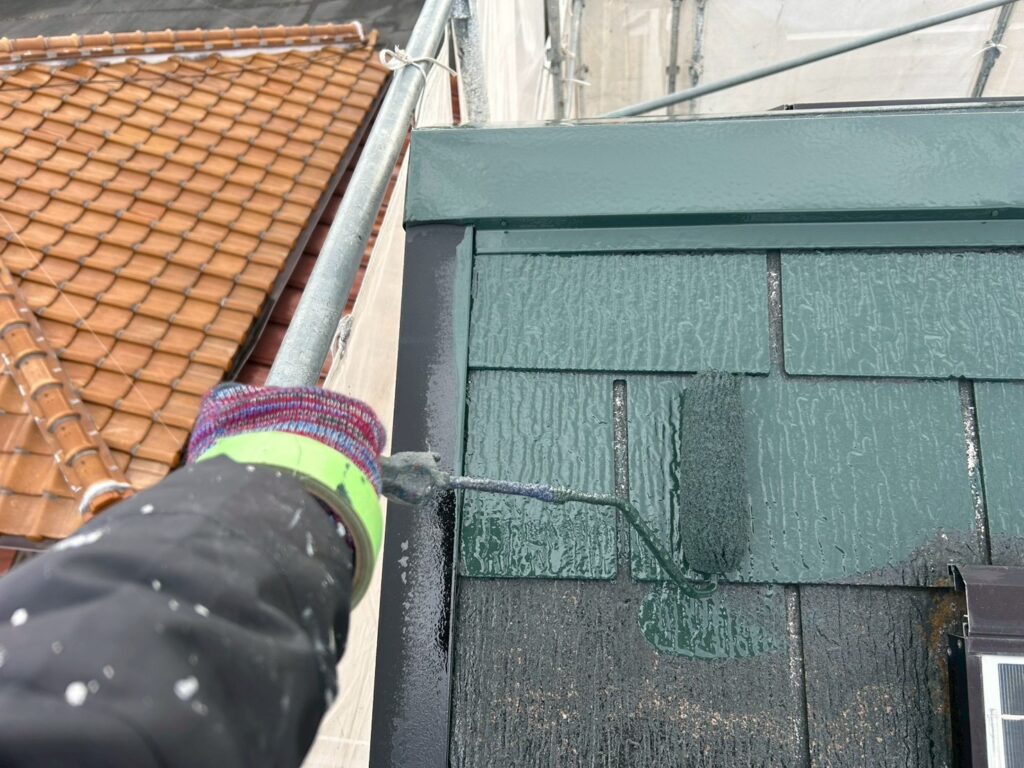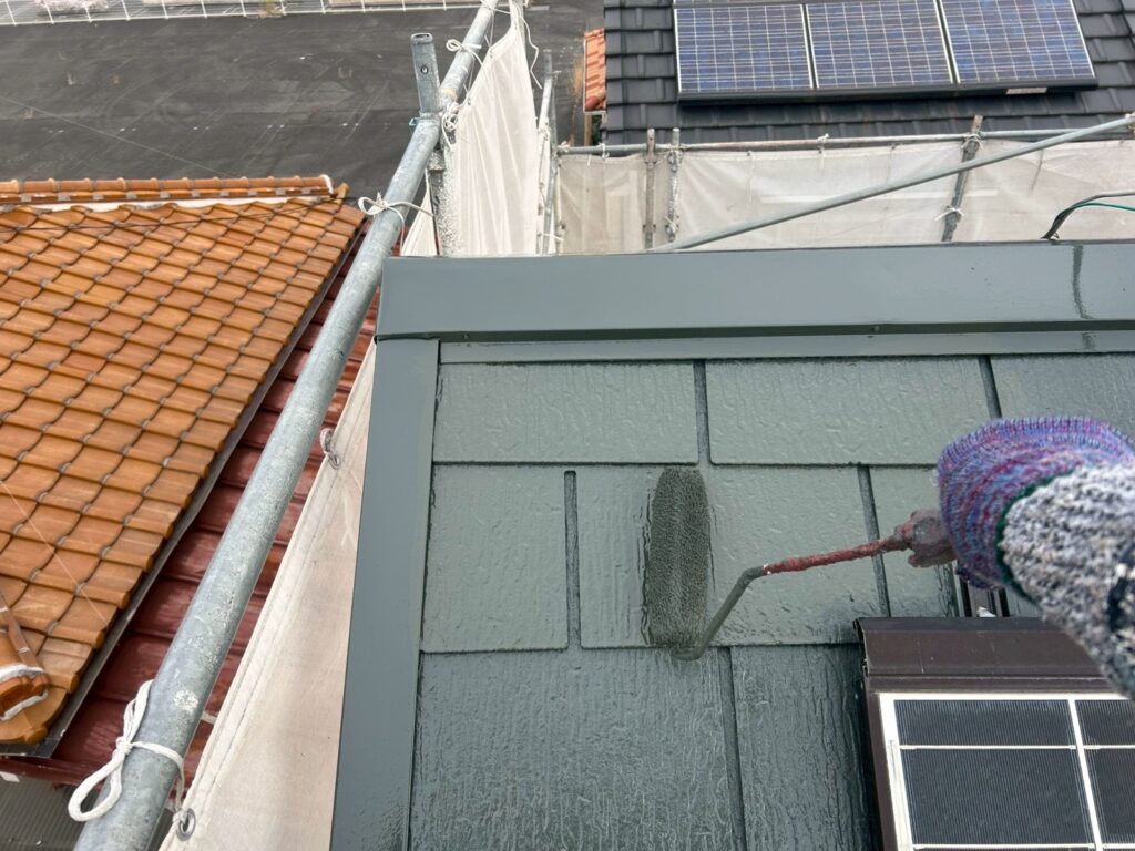 白く素地が見えてきている状態になっていましたが、表面を塗装することによってスレートを保護します。