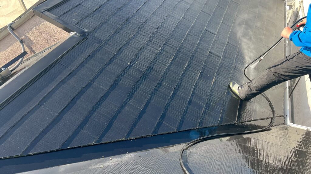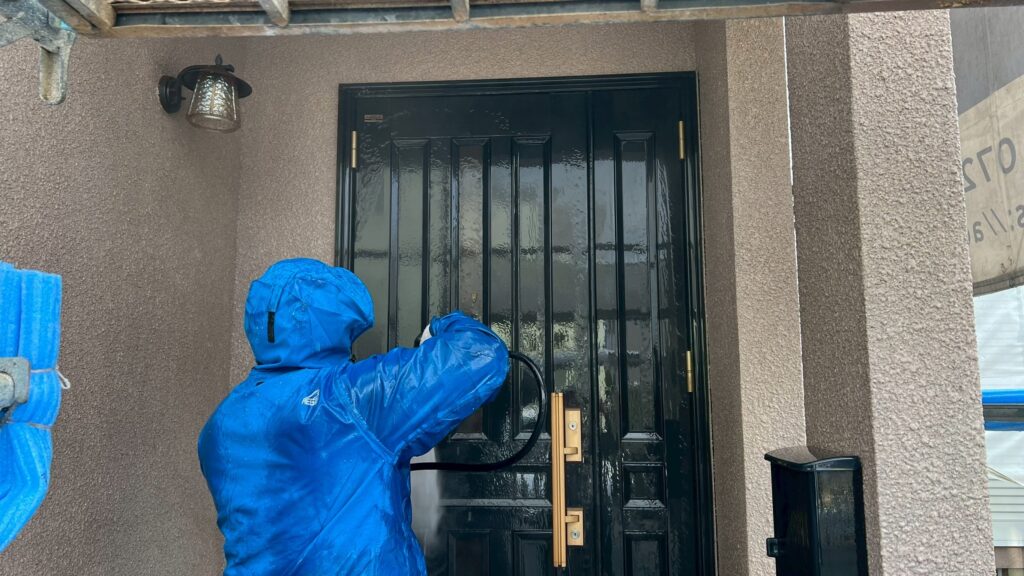 塗装工事には直接完成ない箇所もついでに洗浄します