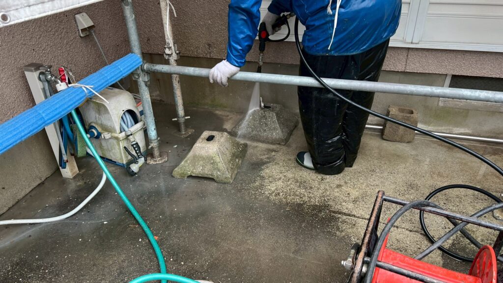その下地処理の一つとして本日は高圧洗浄を行います。