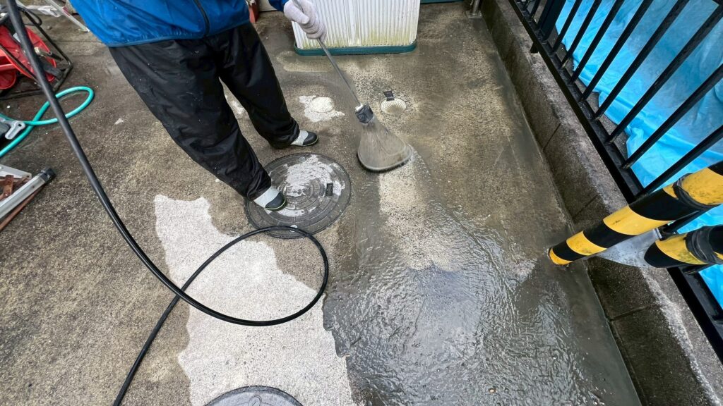 高圧洗浄中はエンジン音が周囲に響き渡ります。