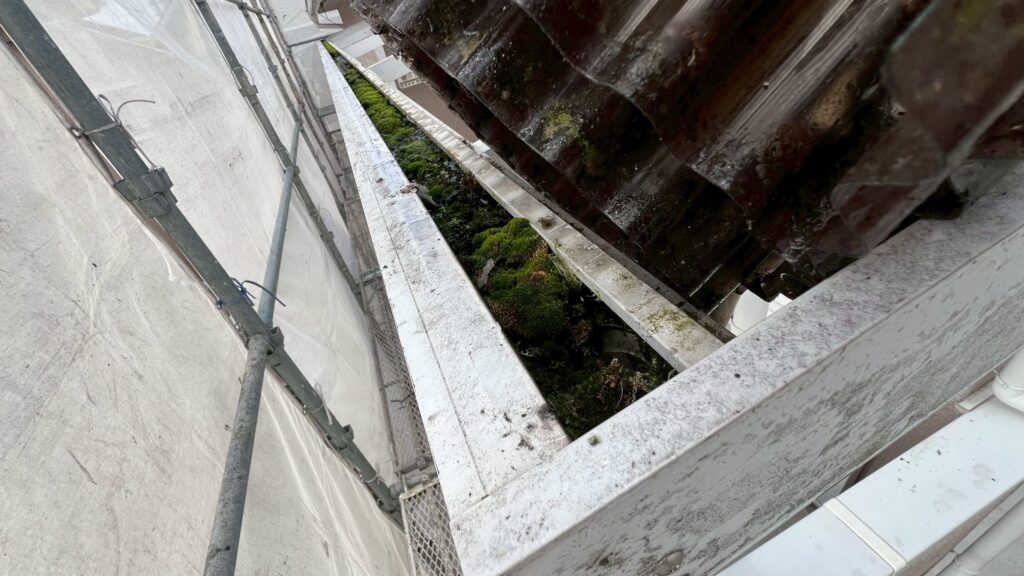 屋根は勾配があるので、常に踏ん張りながらの大変な作業です。
