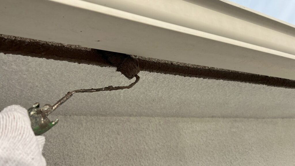 吹付によってゴツゴツしていた外壁が、塗料によって丸みを帯びる仕上がりになりました。