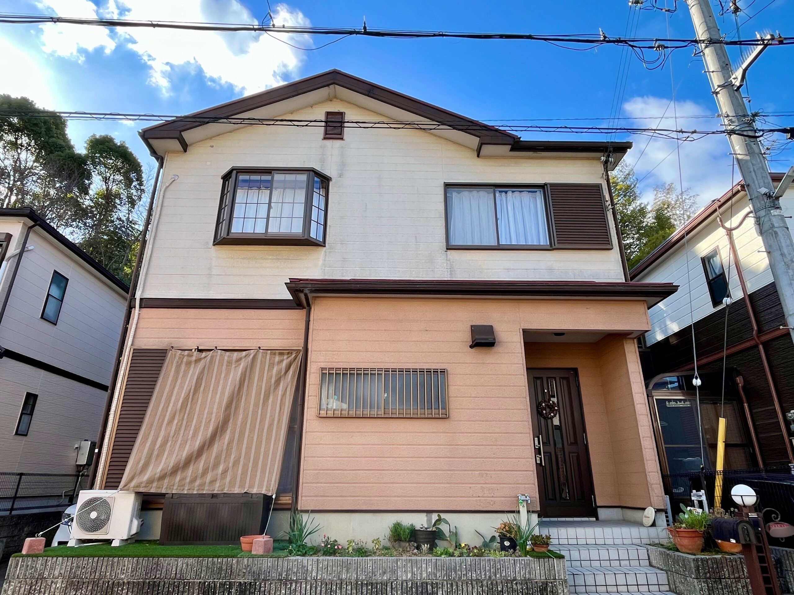 付帯 : シーリング打ち替え、樋、破風板、雨戸、水切り、クーラーホースカバー、庇、帯、換気フード、テラス樋、屋根裏換気口、門柱、ポスト、表札、玄関ポーチ、立水栓、網戸張替え