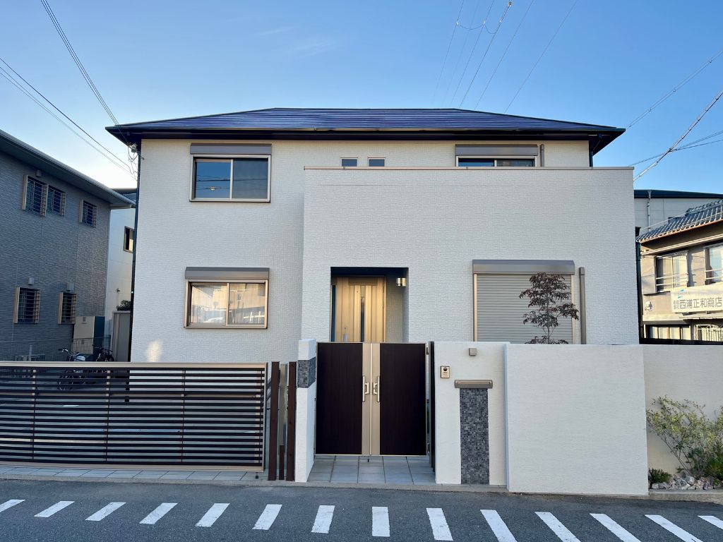 外壁 : プレミアムシリコンTASAI工法(エスケー化研)▶︎ ベース色 SR-174 / 柄色 調色8082